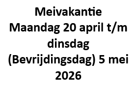 Meivakantie 20 april t/m 5 mei 2026