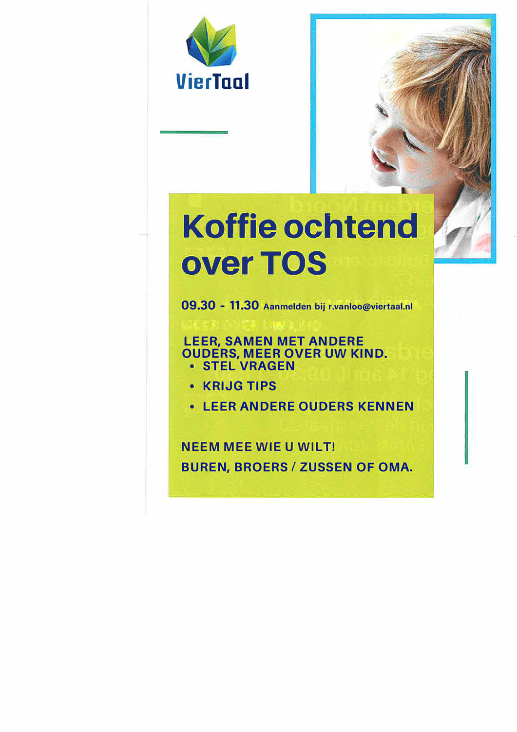 Dinsdag 14 april - koffieochtend voor ouders over TOS