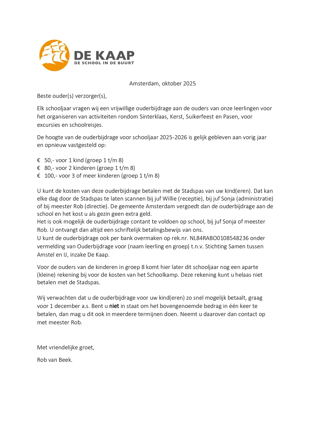 Ouderbijdrage 2025-2026